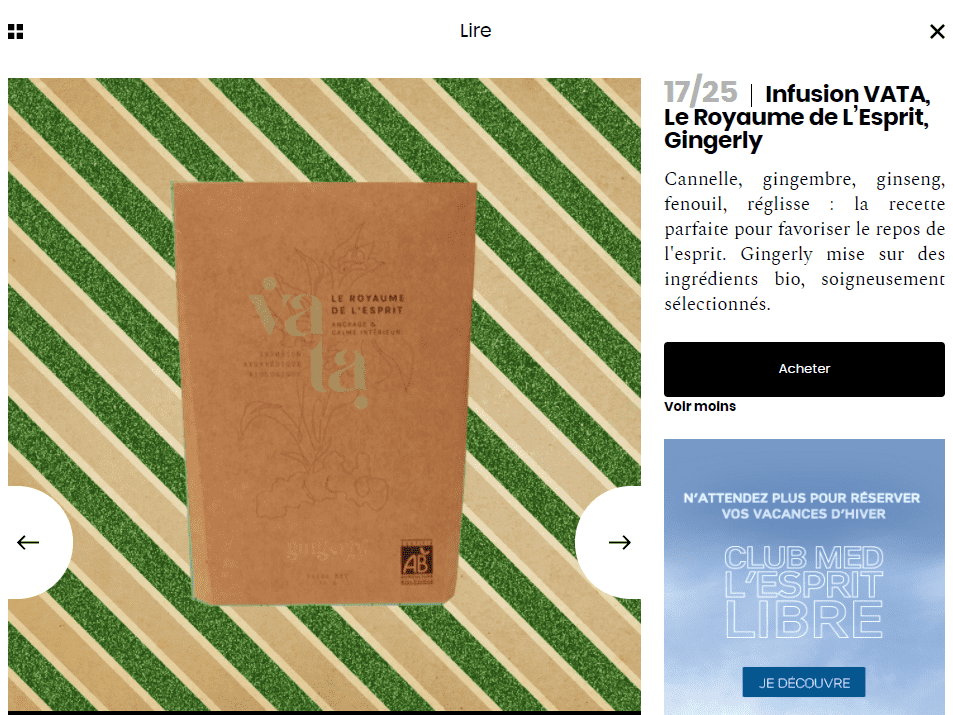 Ce mercredi 08 décembre, le magazine digital Marie Claire publiait une sélection de 25 idées de cadeaux bien-être pou illuminer vos fêtes et devinez quoi ?! Notre infusion Je vis l'instant présent (anciennement Le Royaume de l'Esprit) a retenu leur attention !