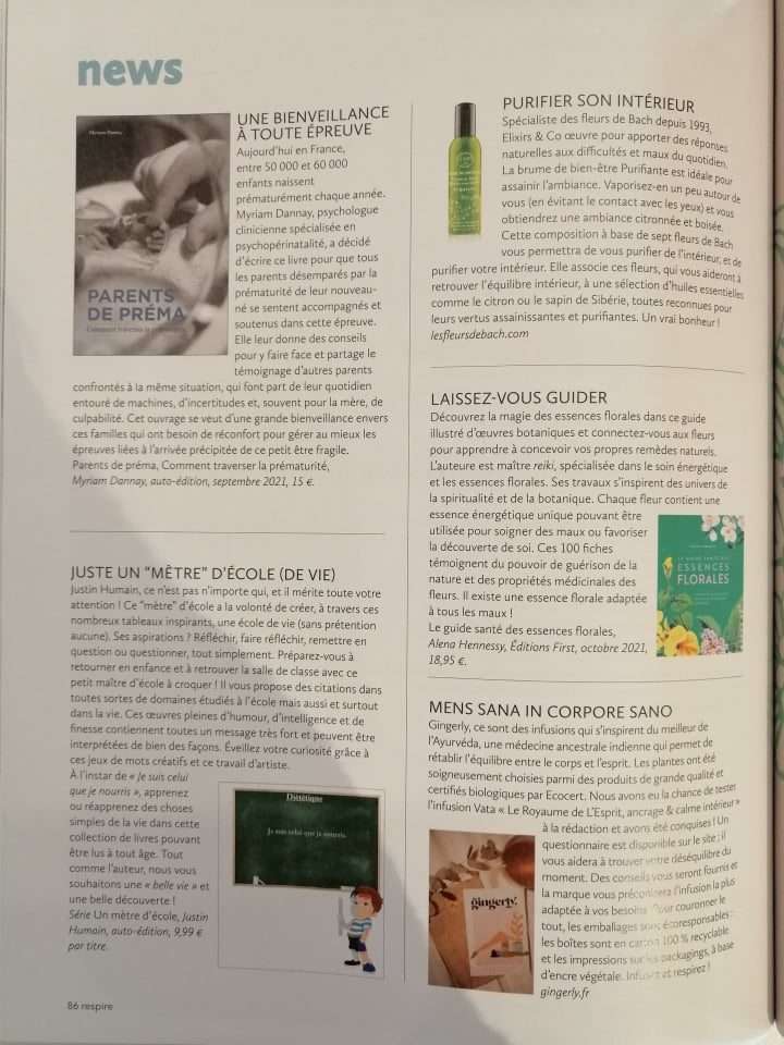 Le magazine Respire, c’est l’un des magazines préférés de Gingerly. Notre fondatrice Aurélie adore le lire. Vous imaginez donc sans peine notre joie lorsque nous avons découvert que le numéro de janvier conseillait les produits et l’expérience Gingerly à ses lecteurs…