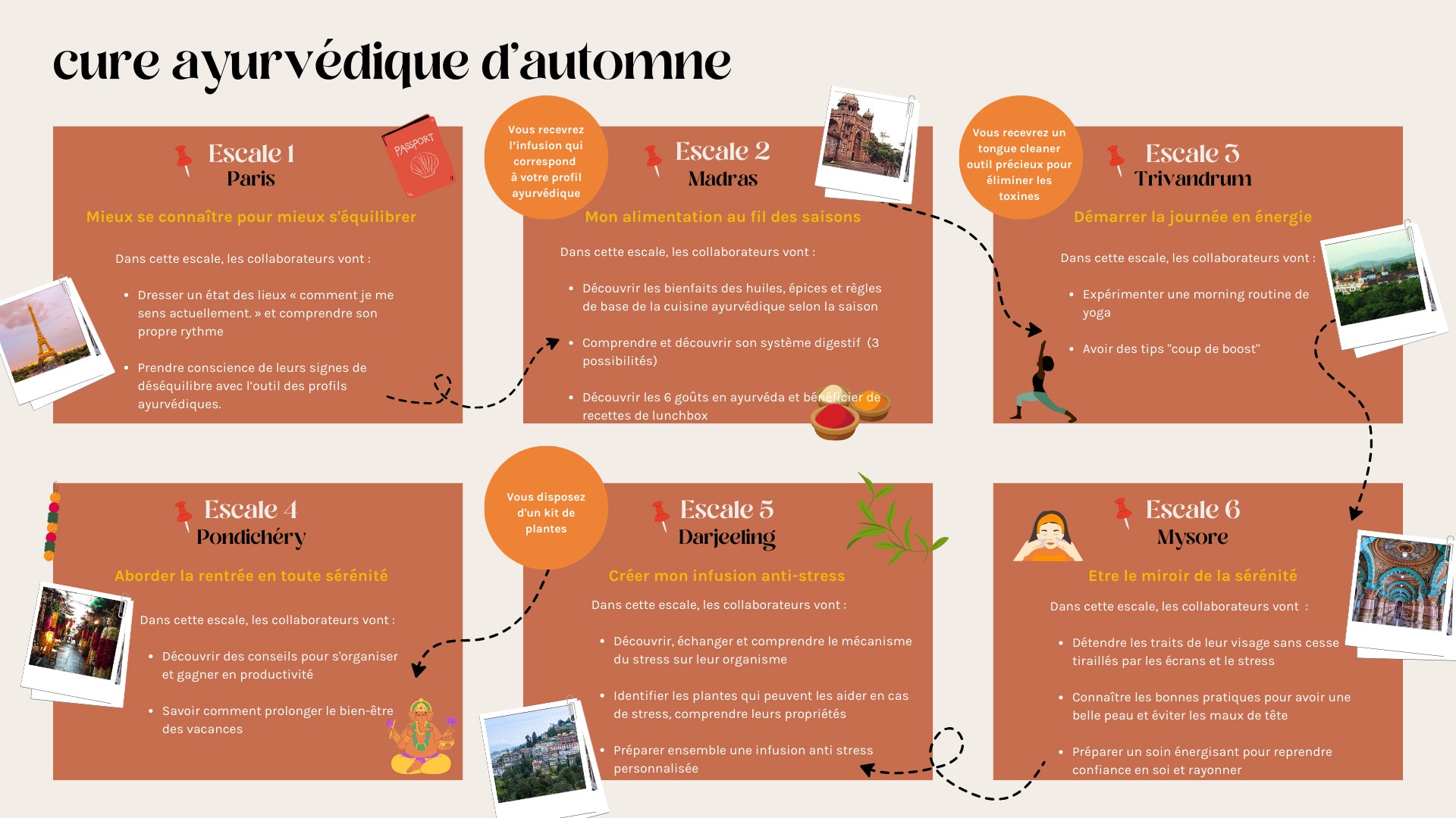 - Un programme exclusif qui emmène vos collaborateurs en Inde avec ses “escales” par villes différentes en fonction des saisons