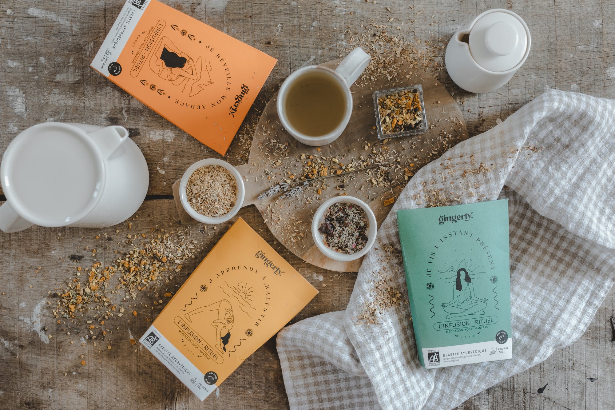 C’est ainsi qu’en 2020 j’ai décidé de proposer la gamme d’infusions Gingerly avec le Rituel des « 10 minutes pour moi ». Le temps de faire infuser les plantes, vous bénéficiez d’une méditation guidée, d’une posture de yoga assis ou d’un mantra. Pour ensuite consommer son infusion en conscience. Plus que des produits, cette démarche a pour but d’ancrer un moment dans la journée tout le diffusant au plus grand nombre. Car tout le monde a le droit de se sentir équilibré(e).